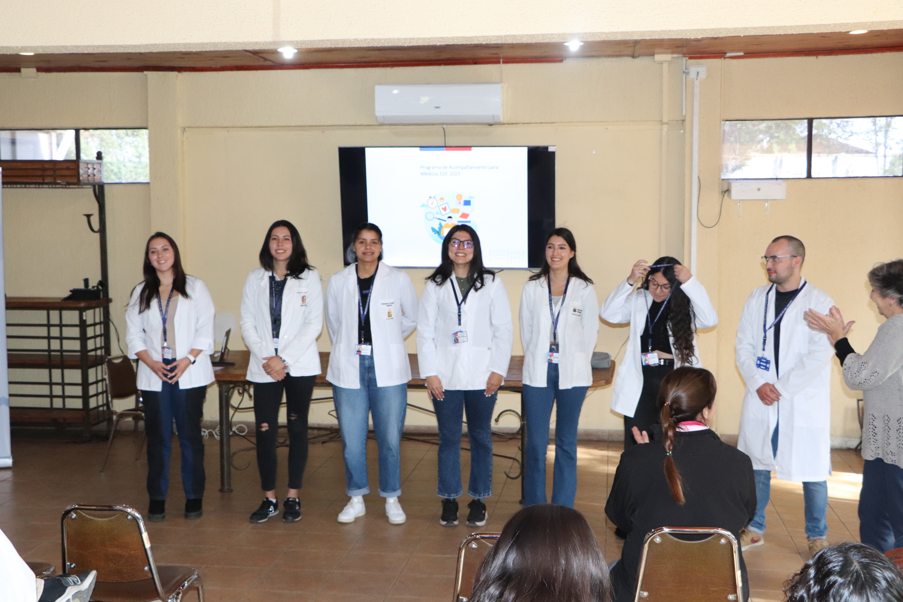 En tanto, la Directora del Servicio de Salud, Andrea Quiero junto con dirigirse a los y las profesionales médicos destacó: “Tremendo desafío es reencantar a los otros y creo que no hay posibilidad si no nos reencantamos nosotros. Este es un reencantamiento colectivo al que tenemos que convocarnos y convocar en razón de que, efectivamente, esta savia nueva viene con un entusiasmo que nos convoca, pero que tenemos que mantener además vivo y patente lo que significa transformar nuestro entorno y que tenga sentido lo que nosotros hacemos. Nuestro Servicio de Salud, uno de los más extensos del país, uno de los más populosos, en el que se encuentran las distintas características y necesidades de la población, nos requiere a todos y todas. Nos plantea un espacio común para todos y para todas, en el que poniendo nuestros talentos y de los jóvenes, que sin duda nos van a motivar, nos van a enfrascar en nuevos desafíos, motivándolos a ellos para retenerlos en nuestro servicio público”