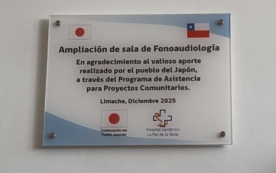 En una emotiva ceremonia, el Hospital Geriátrico La Paz de la Tarde de Limache implementó tres modernas salas de fonoaudiología, con dos equipos de especialidad obtenidos gracias a una iniciativa financiada a través de la Embajada del Japón.